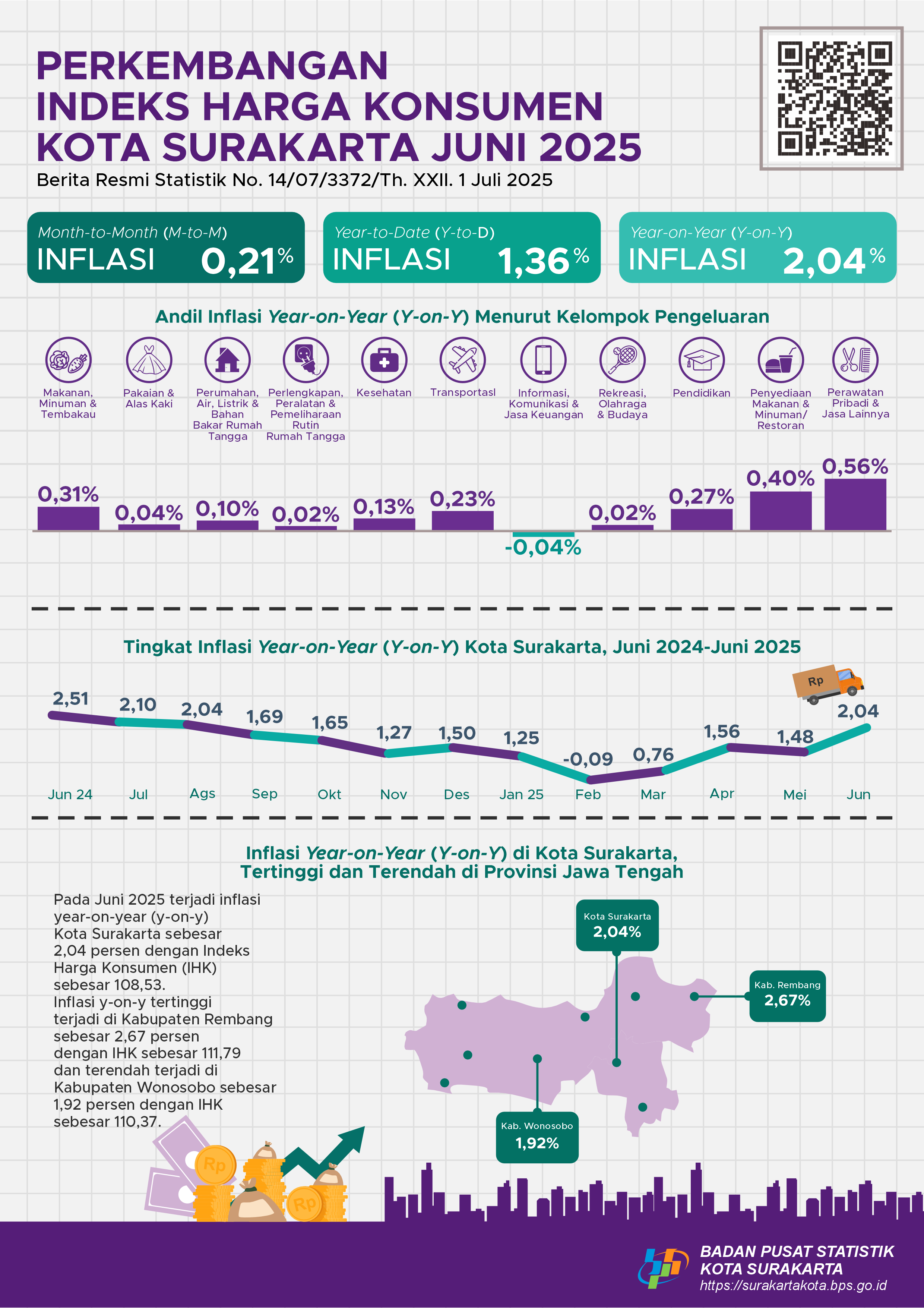 Perkembangan Indeks Harga Konsumen bulan Juni 2025