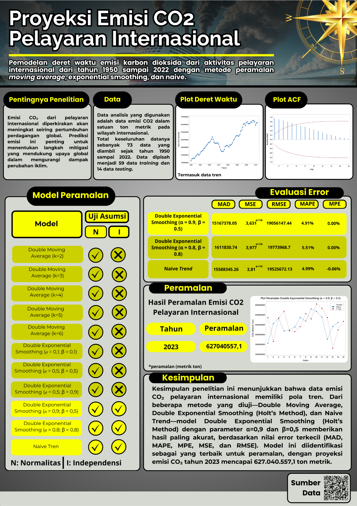 Pemodelan deret waktu emisi karbondioksida dari aktivitas pelayaran internsional dari tahun 1950 sampai tahun 2020 dengan metode peramalan moving average, exponential, dan naive