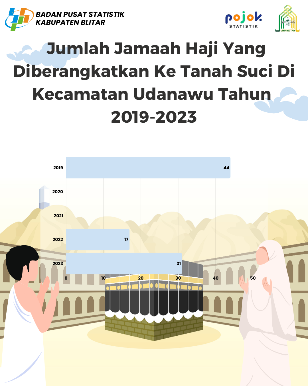 Jumlah Jama'ah Haji Yang Diberangkatkan Ke Tanah Suci Di Kecamatan Udanawu Tahun 2019-2023