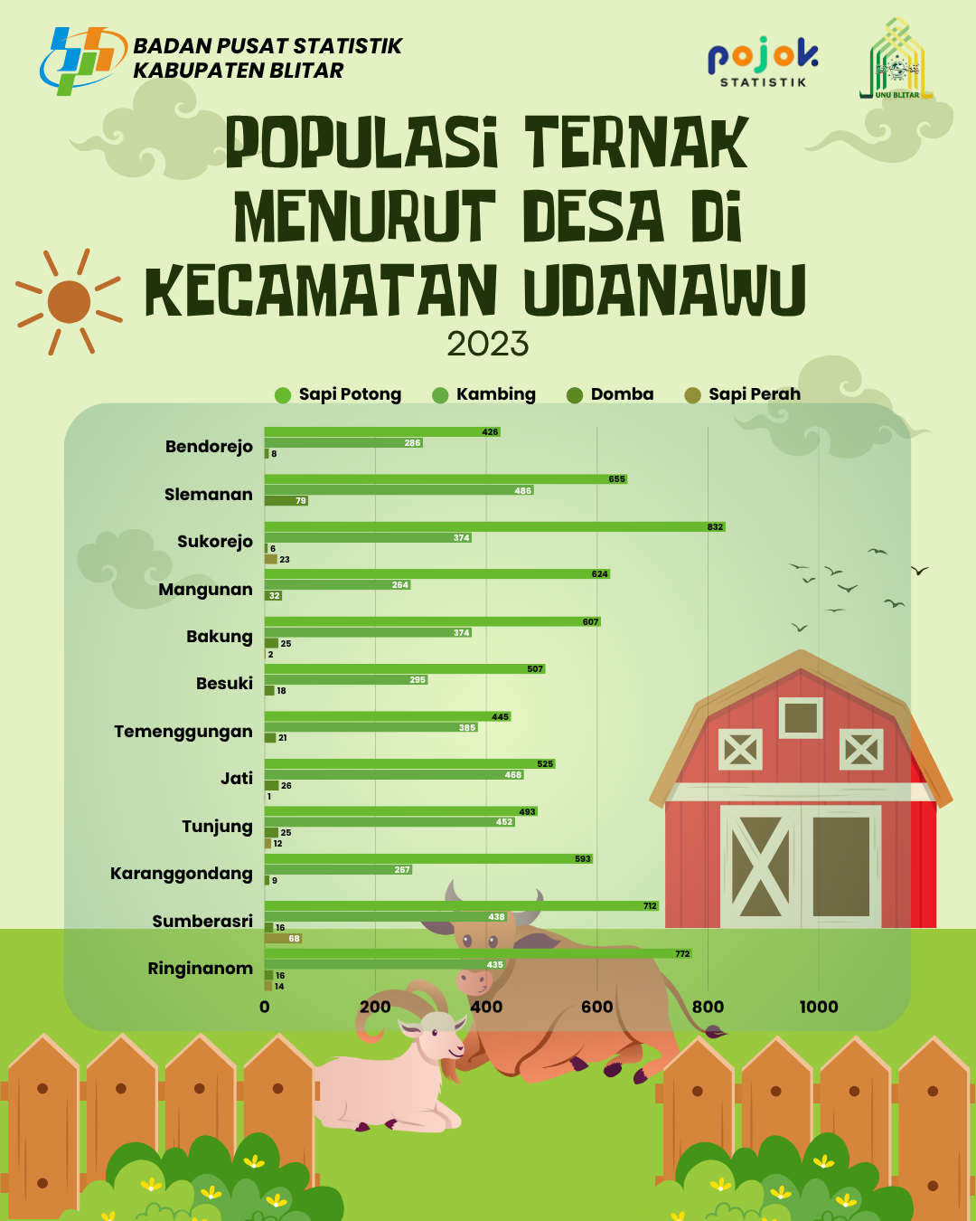 Populasi Ternak Menurut Desa di Kecamatan Udanawu 2023
