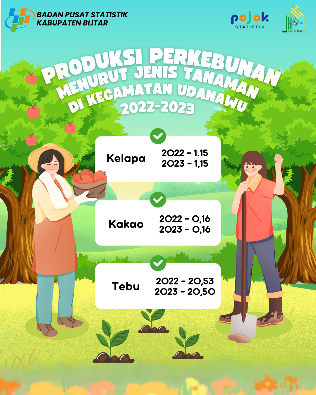 Produksi Perkebunan Menurut Jenis Tanaman di Kecamatan Udanawu 2022-2023
