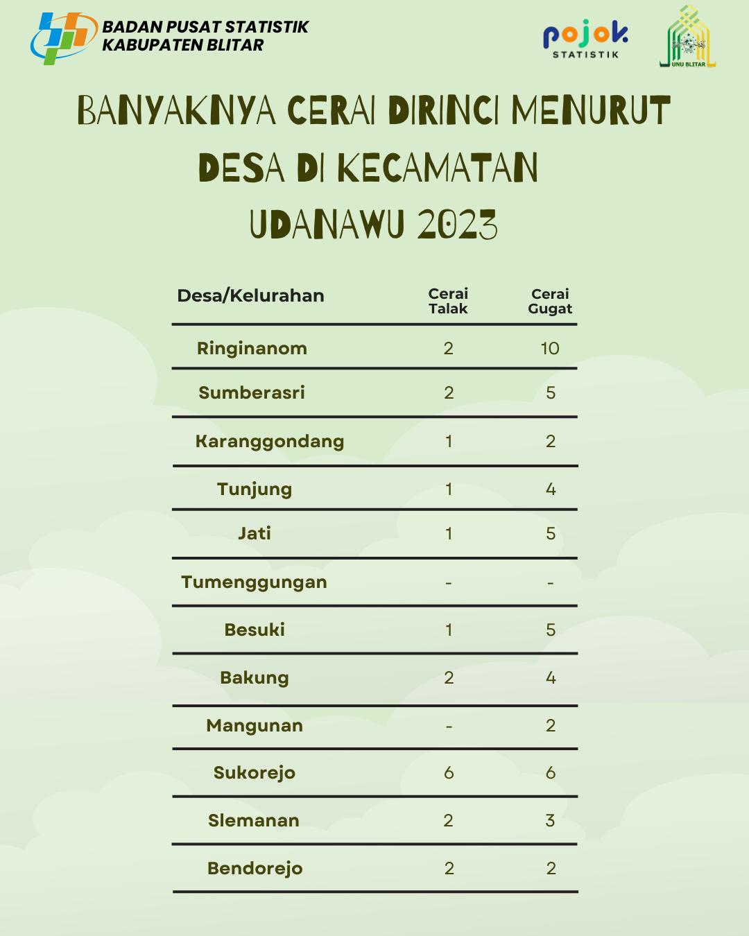 Banyaknya Cerai Dirinci Menurut Desa Di Kecamatan Udanawu 2023
