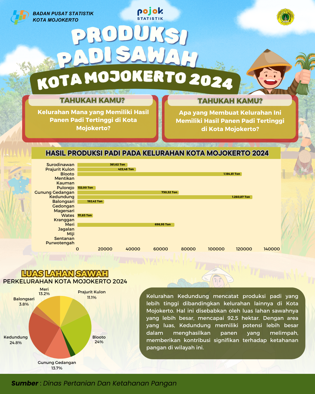 Produksi padi sawah di kota Mojokerto tahun 2024