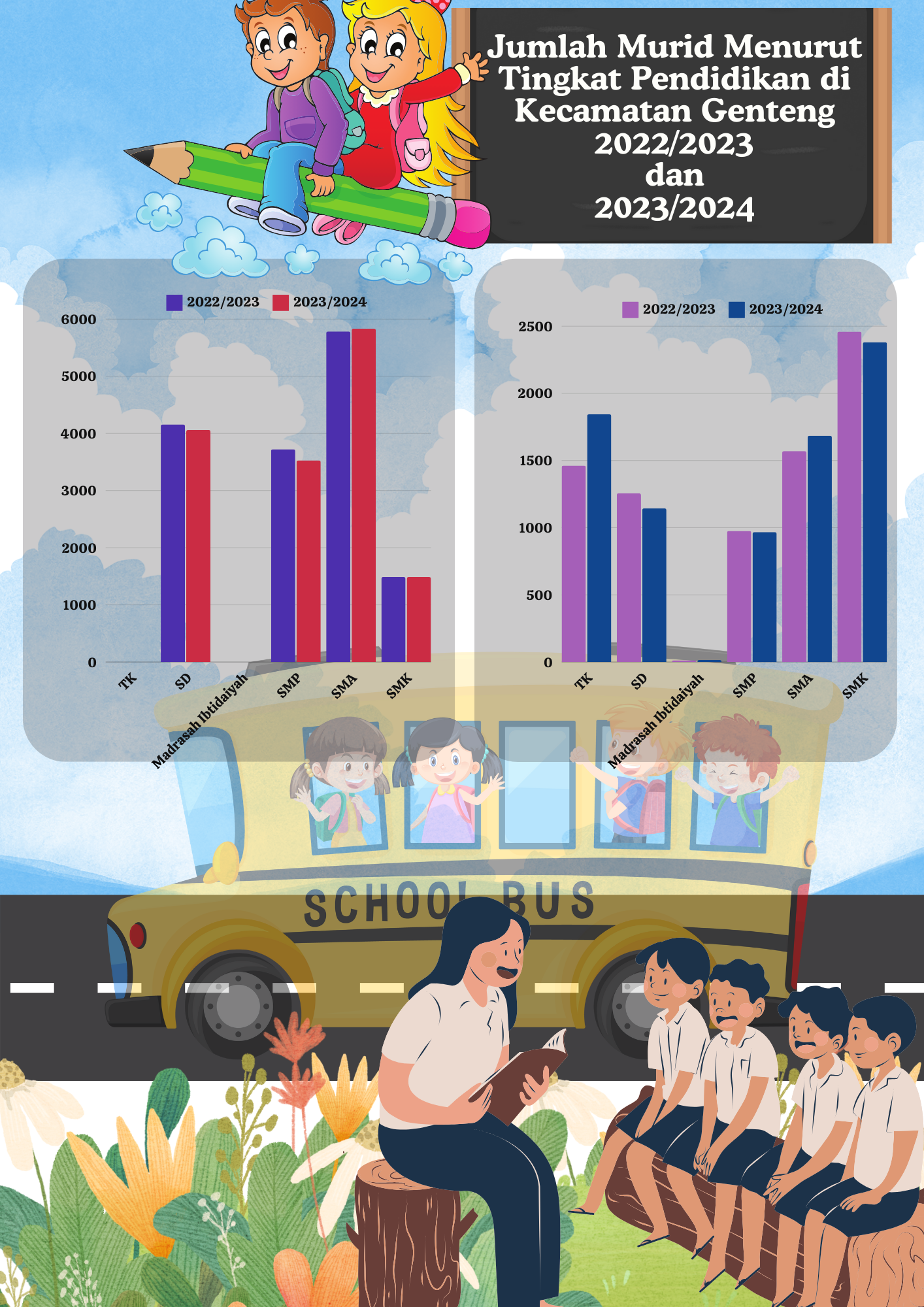 Jumlah Murid menurut pendidikan di Kec. genteng 2022-2023 dan 2023-2024
