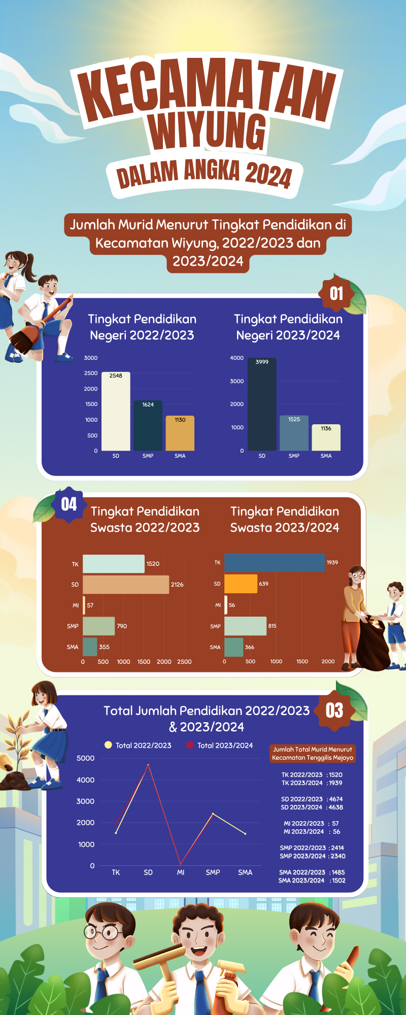 Jumlah murid Menurut Tingkat Pendidikan di kecamatan wiyung 2022/2023 dan 2023/2024