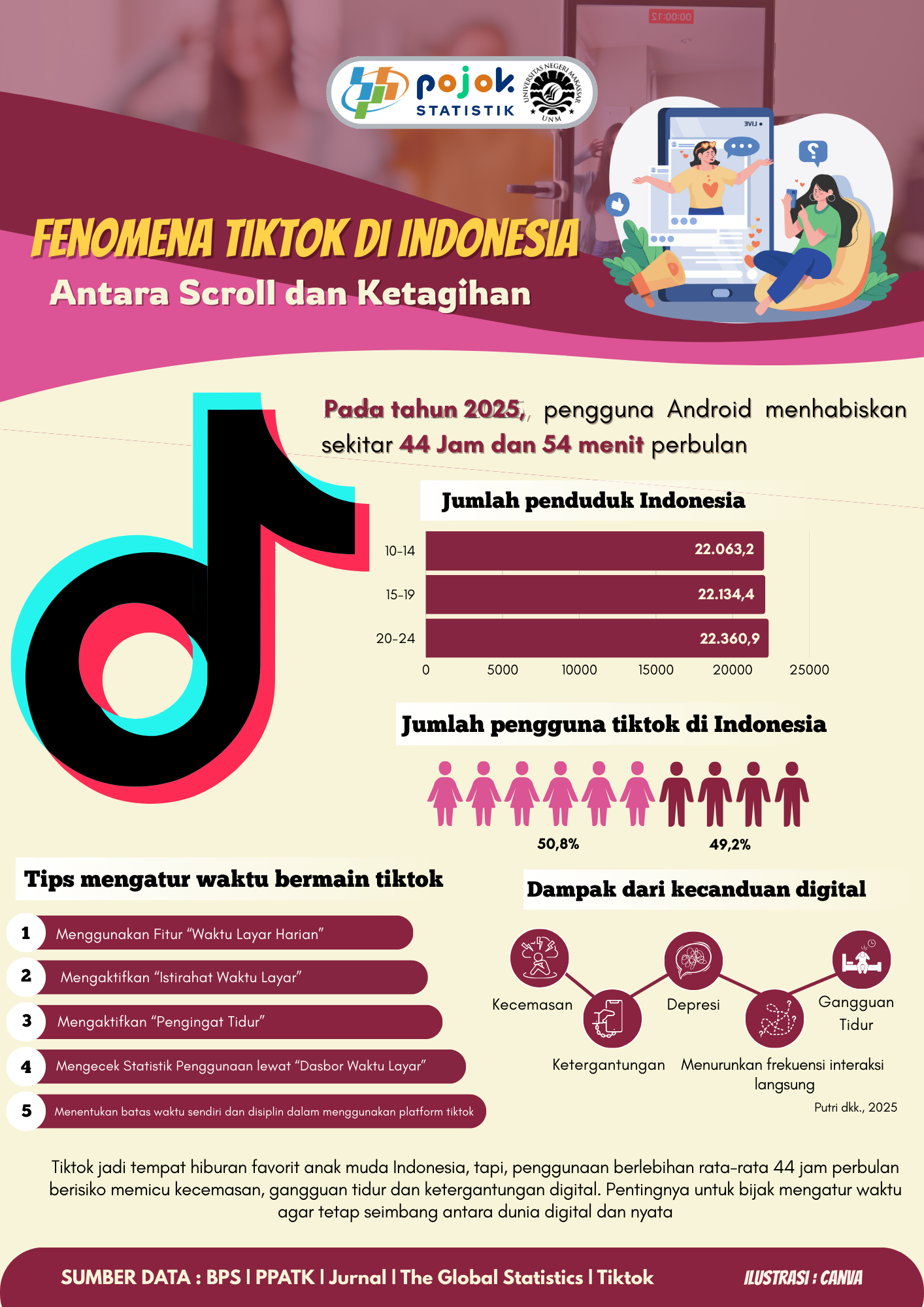 Pada tahun 2025, pengguna Android menghabiskan sekitar 44 Jam dan 54 menit perbulan. Tiktok jadi tempat hiburan favorit anak muda Indonesia, tapi, penggunaan berlebihan rata-rata...