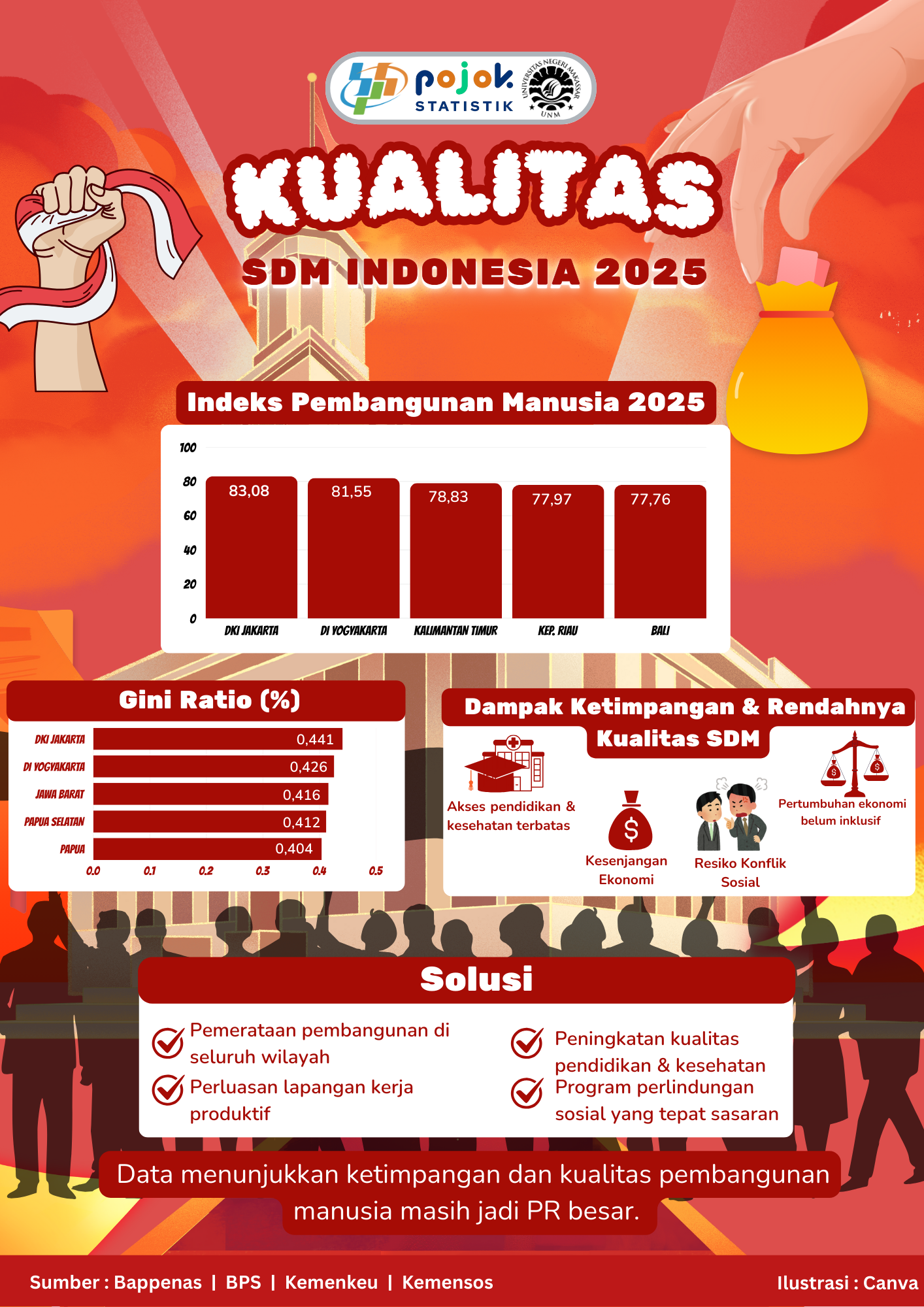 Ketimpangan masih membayangi kualitas SDM Indonesia. IPM yang tinggi belum menjamin pemerataan akses pendidikan, kesehatan, dan kesempatan ekonomi di seluruh wilayah. Saatnya tingkatkan kualitas SDM...
