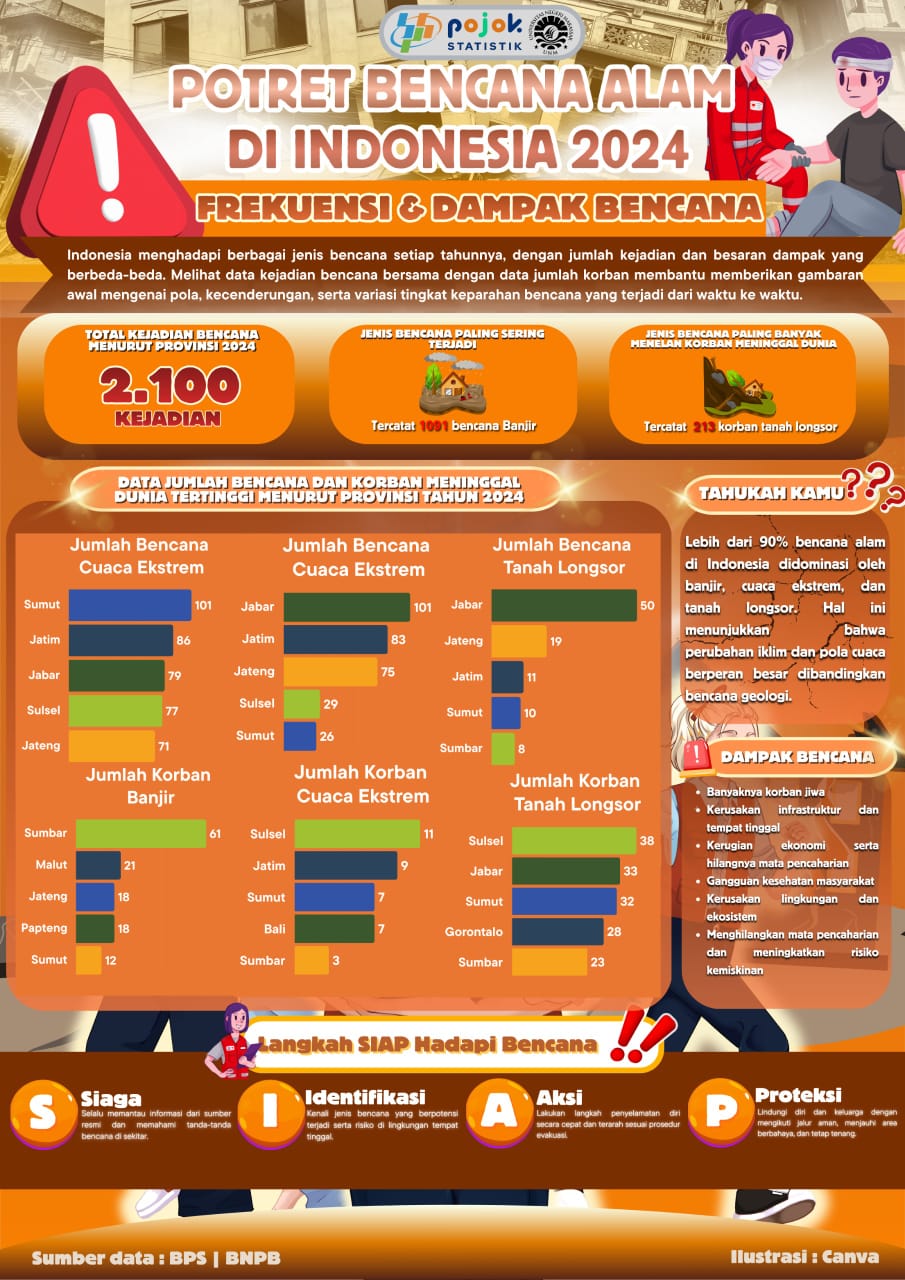 Indonesia mengalami sekitar 2.100 kejadian bencana alam pada tahun 2024, dengan banjir sebagai bencana yang paling sering terjadi dan tanah longsor sebagai bencana dengan jumlah...
