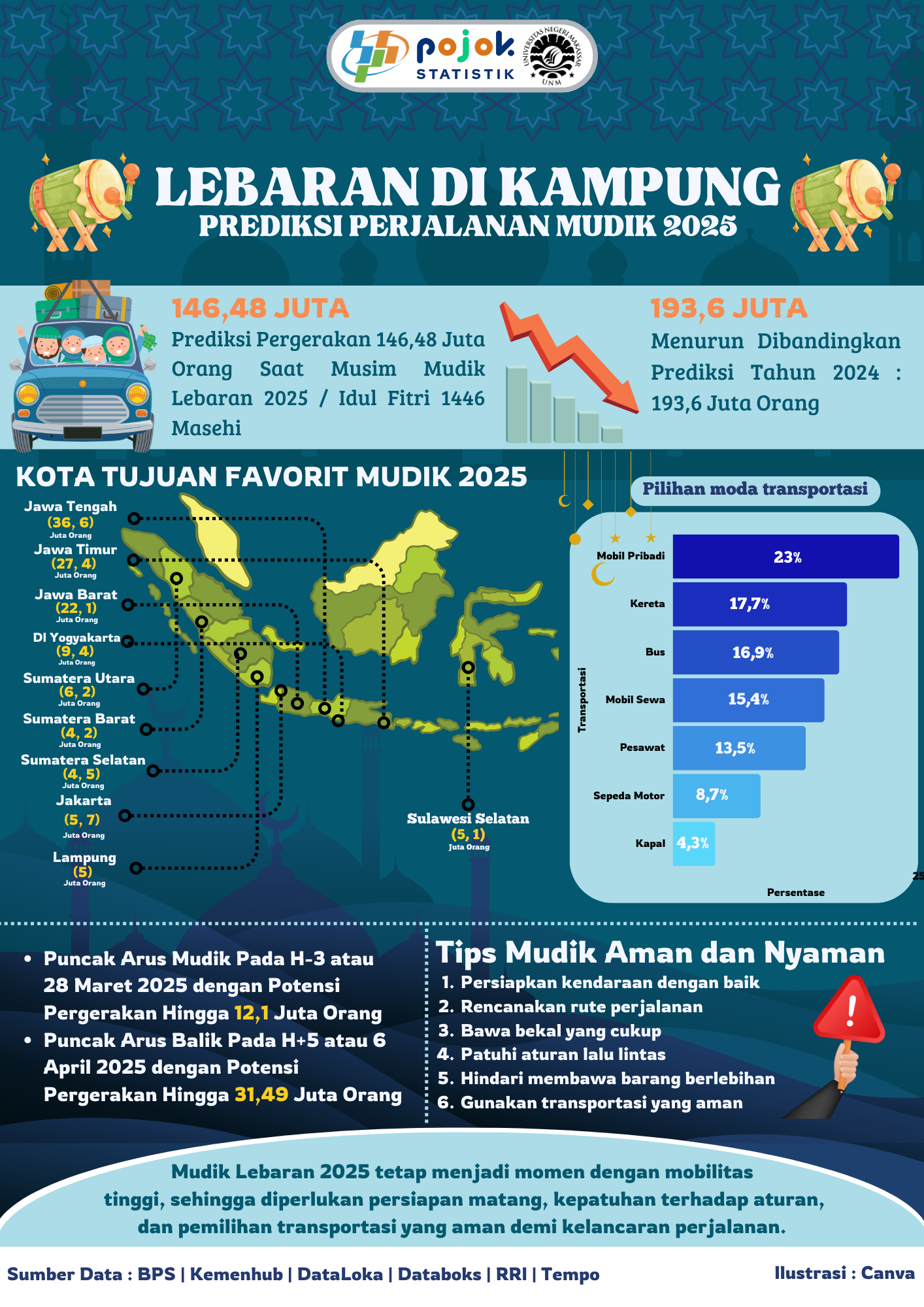 Prediksi pergerakan 146,48 juta orang saat musim mudik Lebaran 2025 / Idul Fitri 1446 Masehi. Mudik Lebaran 2025 tetap menjadi momen dengan mobilitas tinggi, sehingga...