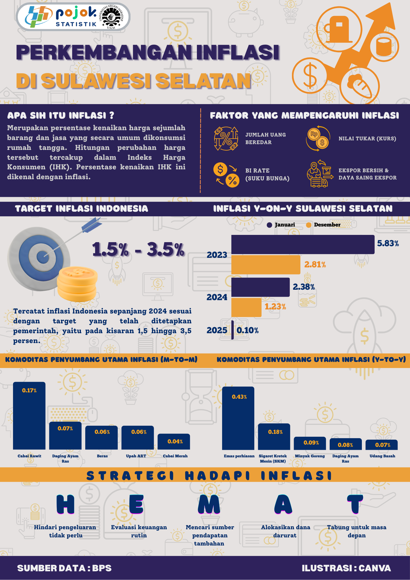 inflasi merupakan persentase kenaikan harga sejumlah barang dan jasa yang secara umum dikonsumsi rumah tangga. Hitungan perubahan harga tersebut tercakup dalam Indeks Harga Konsumen (IHK)....