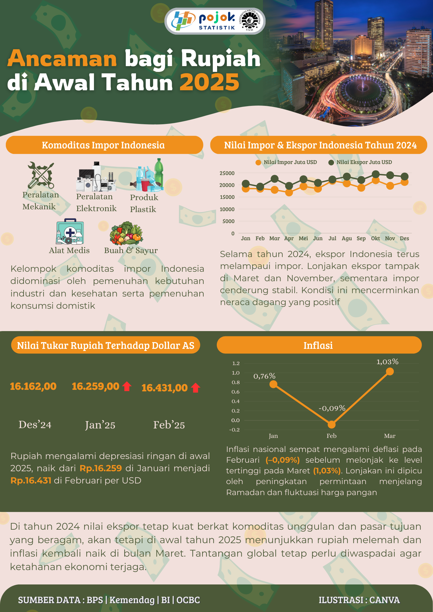 Di tahun 2024 nilai ekspor tetap kuat berkat komoditas unggulan dan pasar tujuan yang beragam, akan tetapi di awal tahun 2025 menunjukkan rupiah melemah dan...