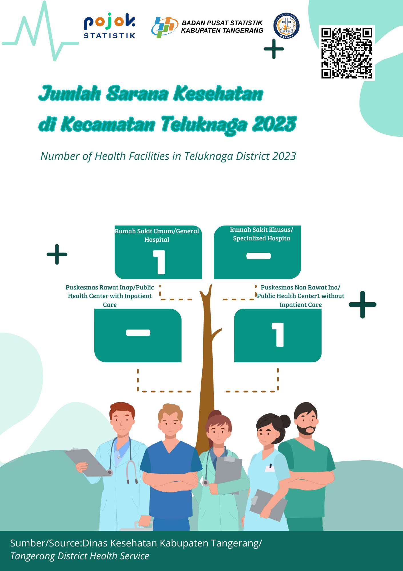 Pada tahun 2023, jumlah sarana kesehatan di Kecamatan Teluknaga sebanyak 2 sarana, terdiri dari 1 rumah sakit umum, 1 puskesmas non rawat inap, sedangkan rumah...
